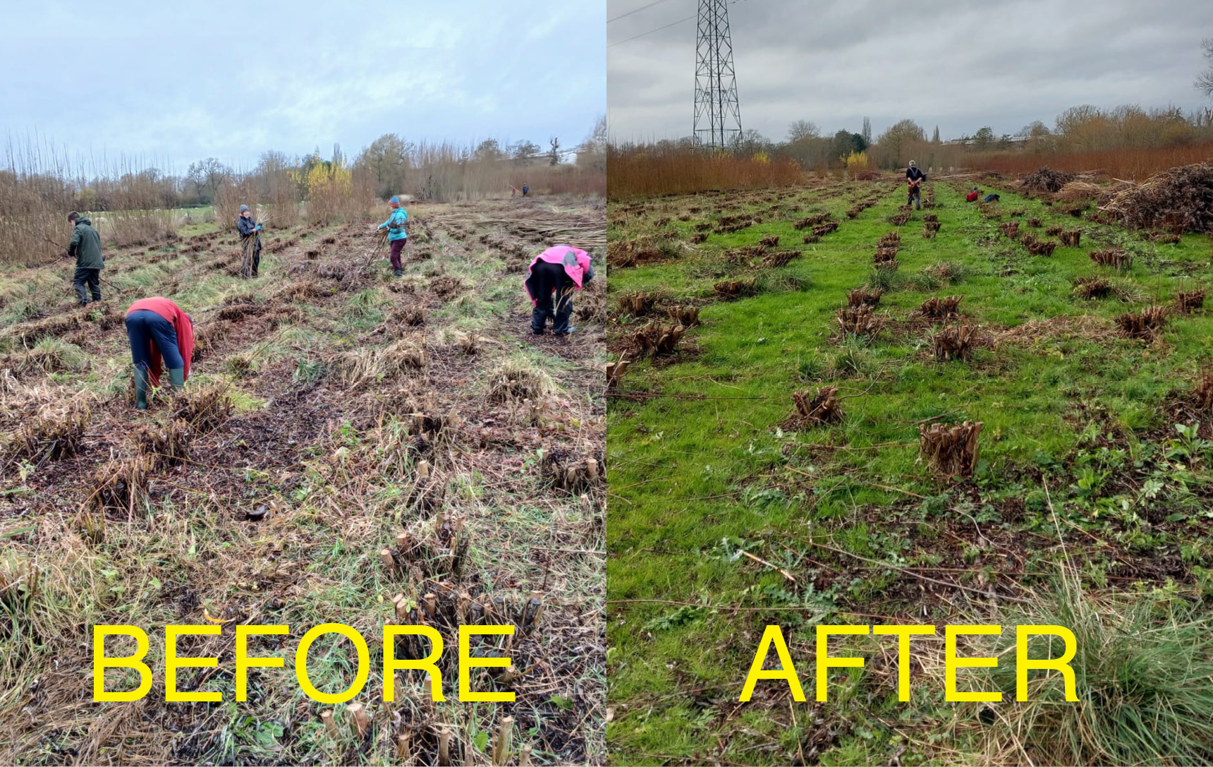 This Wednesday network members worked hard to clear the willow coppice of abandoned cut material, bundling it up and raking a huge area in anticipation of the creation of a new wet woodland. Well done all!