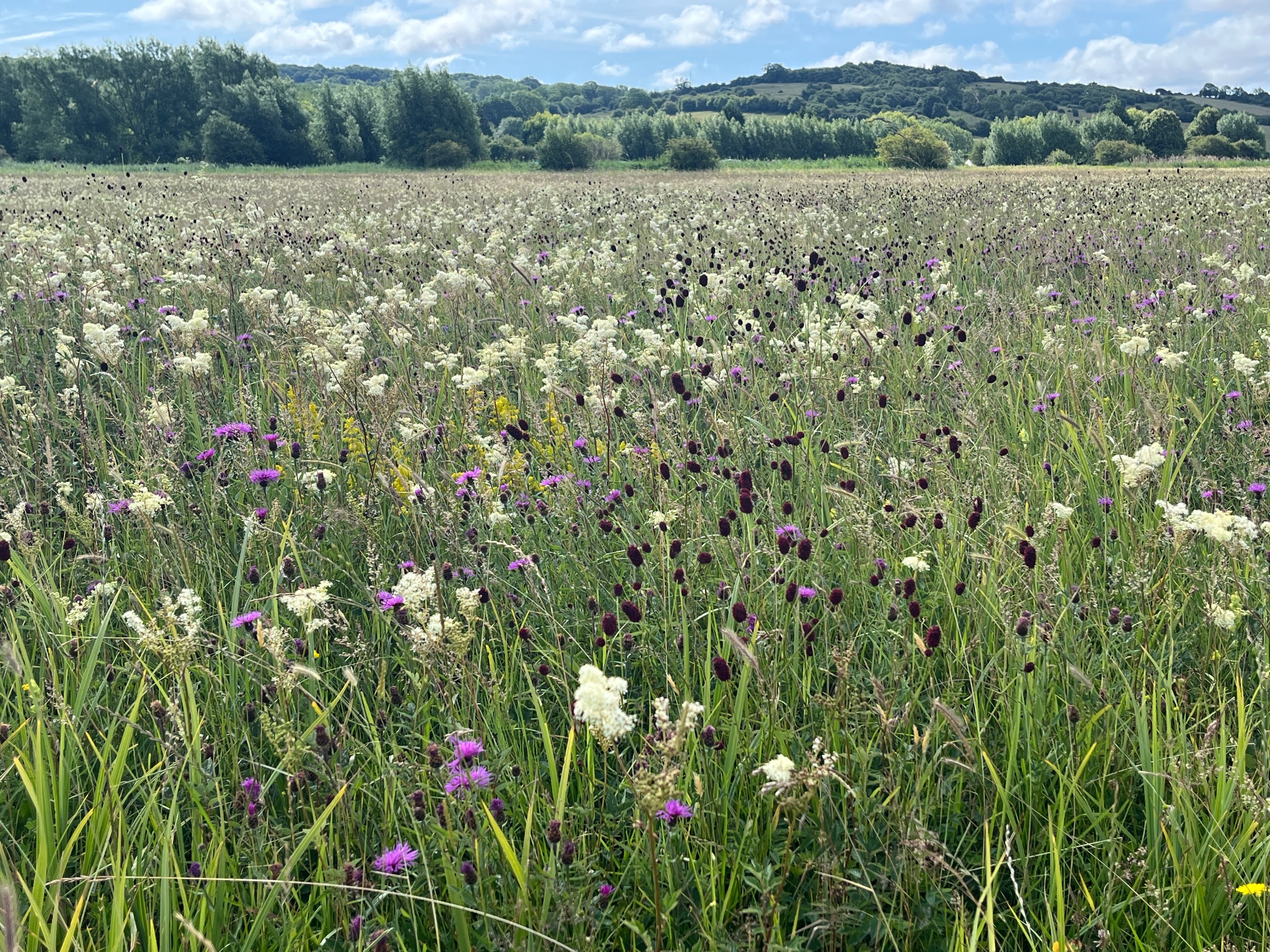 Neyotts and Changeable Furlongs community meadows are on the same side as the pub, walk from the Talbot across the stream and turn left into the meadows through the pedestrian gate before the toll bridge. Check location at Long Mead first!